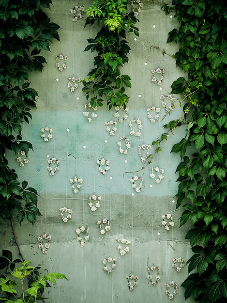 filet de lin, fils de coton, noyaux de cerise, papier japonais